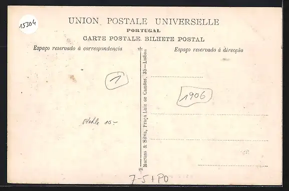 Personenbezogene Daten auf der Rückseite der Karte wurden durch blauen Textmarker unkenntlich gemacht. Die blauen Stellen sind auf die Vorderseite durchgeweicht und wirken sich negativ auf das Postkartenfoto aus