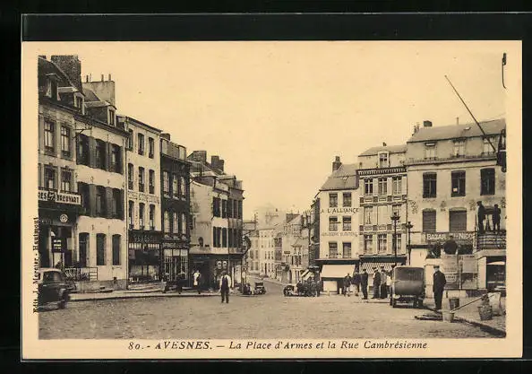 AK Avesnes, la Place d'Armes et la Rue Cambrésienne
