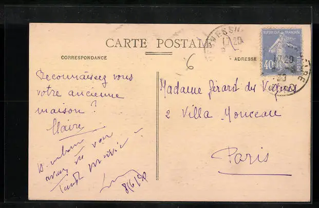 Personenbezogene Daten auf der Rückseite der Karte wurden durch blauen Textmarker unkenntlich gemacht. Die blauen Stellen sind auf die Vorderseite durchgeweicht und wirken sich negativ auf das Postkartenfoto aus