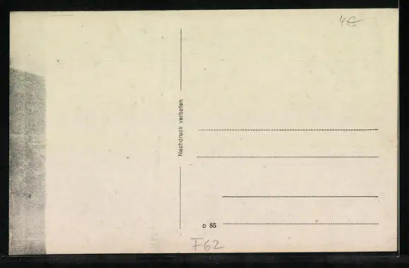 Personenbezogene Daten auf der Rückseite der Karte wurden durch blauen Textmarker unkenntlich gemacht. Die blauen Stellen sind auf die Vorderseite durchgeweicht und wirken sich negativ auf das Postkartenfoto aus
