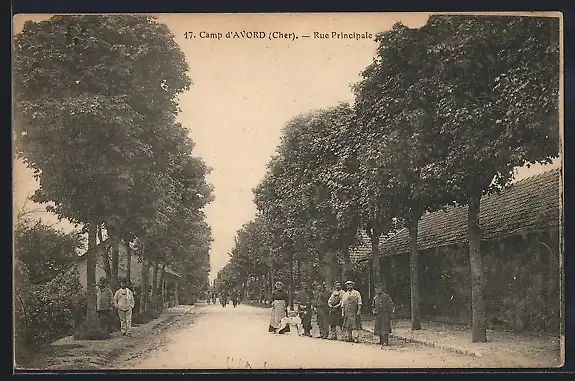 AK Avord, Rue Principale avec des passants et arbres alignés