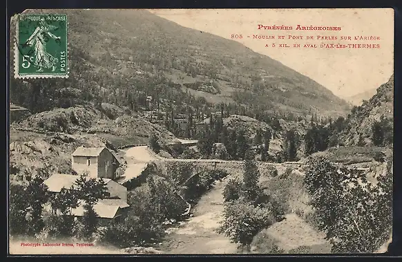 AK Ax-les-Thermes, Moulin et pont de Perles sur l`Ariège