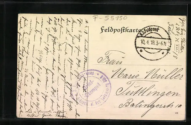 gelaufen 1918 als Feldpost, Stempelspur, sonst guter Zustand