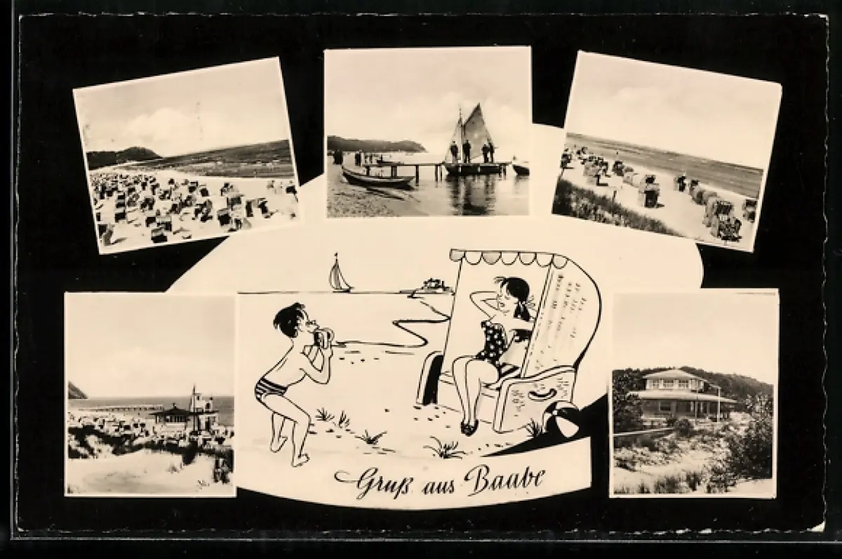 AK Baabe, Strand, Strandkörbe, Segelboote, Promenade