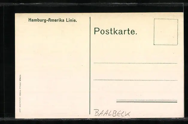 Personenbezogene Daten auf der Rückseite der Karte wurden durch blauen Textmarker unkenntlich gemacht. Die blauen Stellen sind auf die Vorderseite durchgeweicht und wirken sich negativ auf das Postkartenfoto aus
