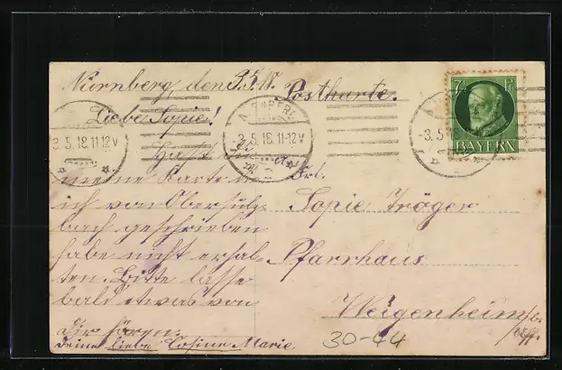 alte Ansichtskarte, gelaufen 1918, guter Zustand