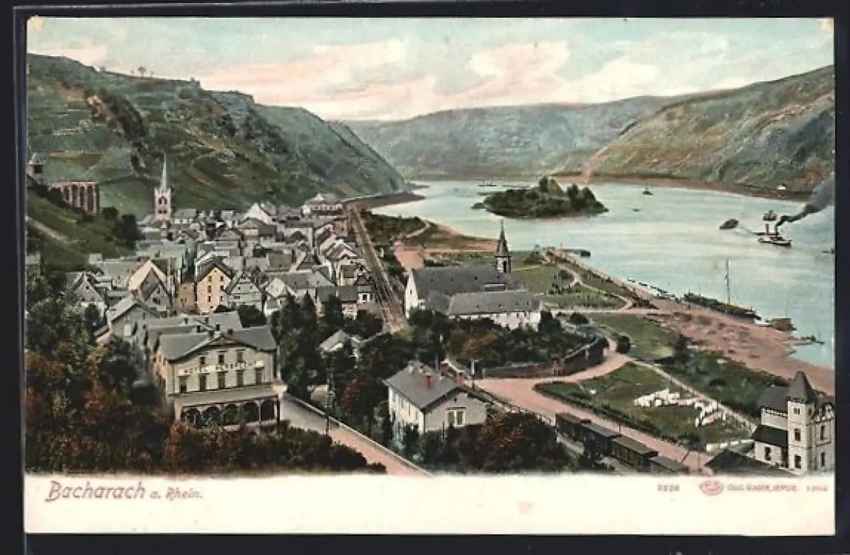 AK Bacharach /Rh., Totalansicht mit Rheinblick