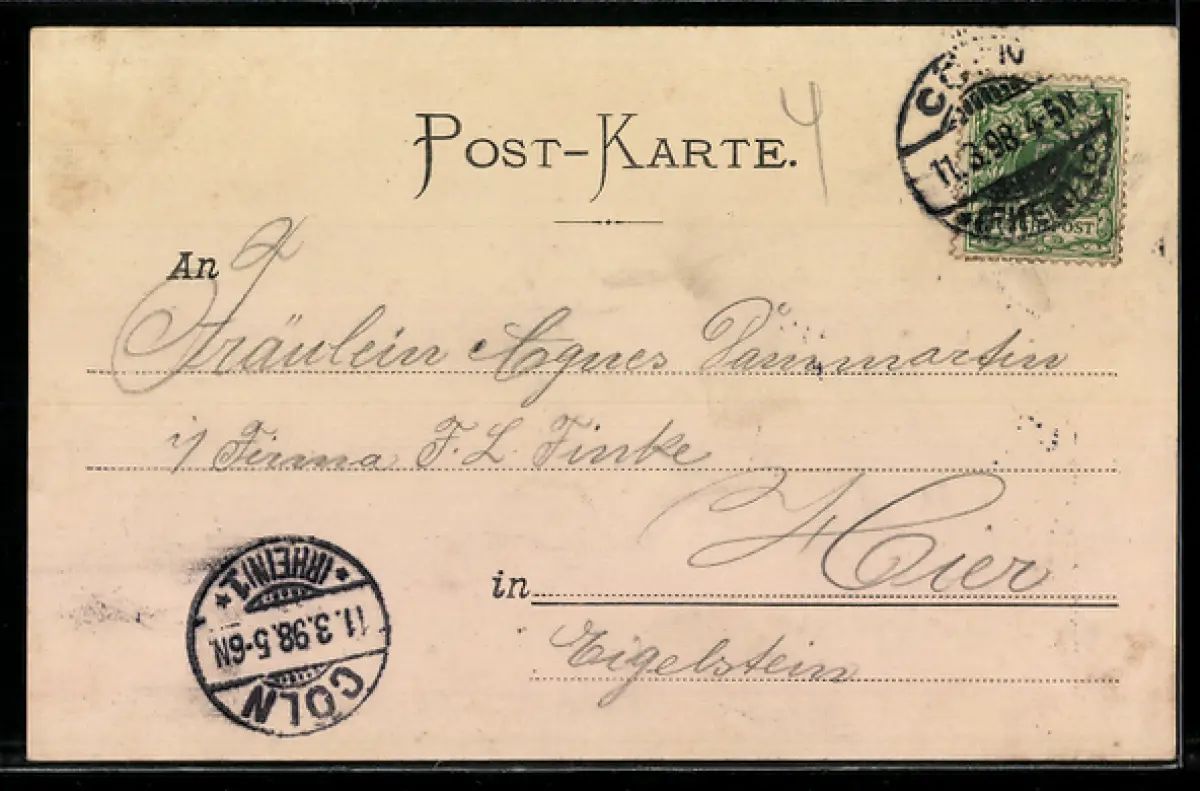 alte Ansichtskarte, gelaufen 1898, Stempelspur, guter Zustand