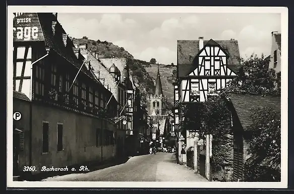 AK Bacharach a. Rh., Strassenpartie mit Kirche