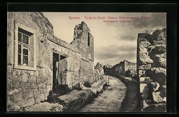 AK Bachtschyssaraj /Krim, Strasse mit Ruinen