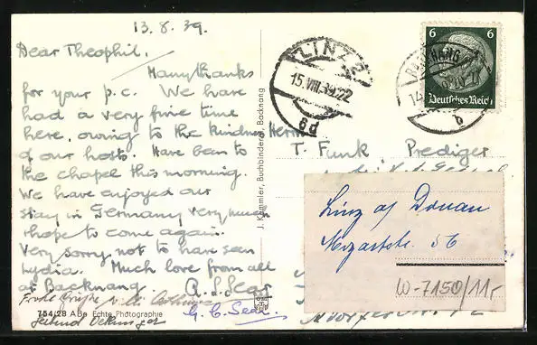 alte Ansichtskarte, gelaufen 1939, guter Zustand