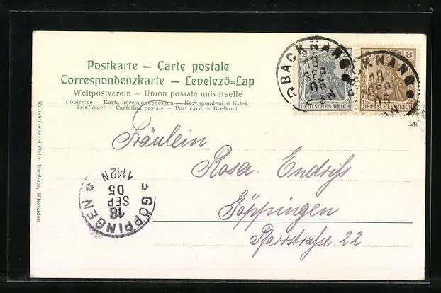 alte Ansichtskarte, gelaufen 1905, guter Zustand