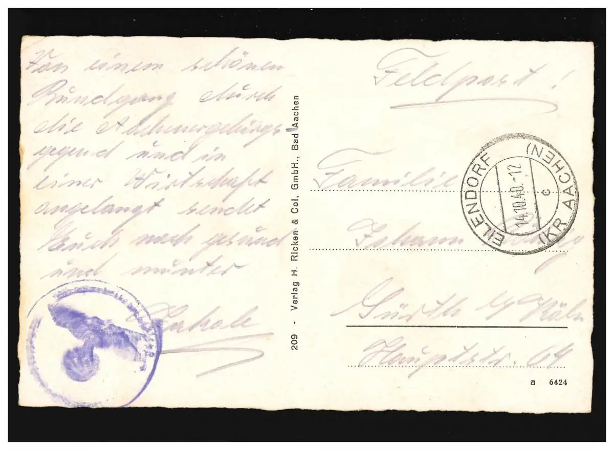 AK Bad Aachen, Dom Turmpartie, Feldpost, Eilendorf 14.10.1940