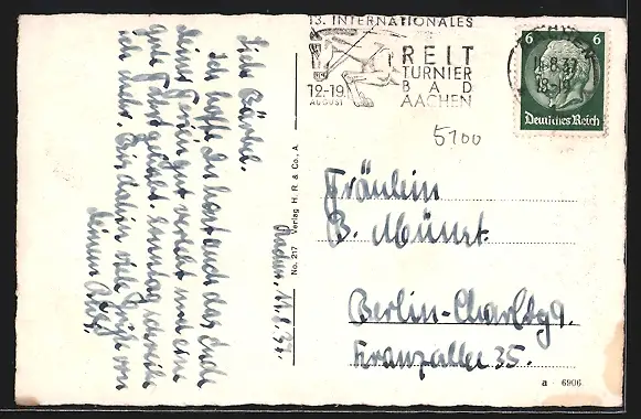 gelaufen 1937, Eckknick re. unten, guter Zustand