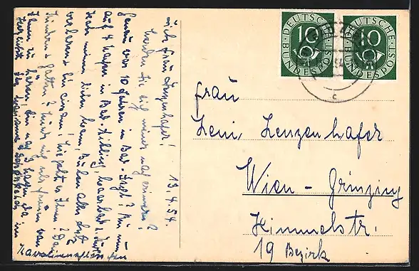 alte Ansichtskarte, gelaufen 1954, Stempelspur, guter Zustand
