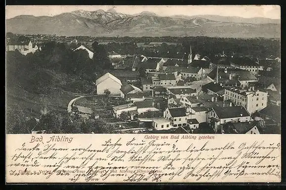 AK Bad Aibling, Ortsansicht mit Gebirgspanorama