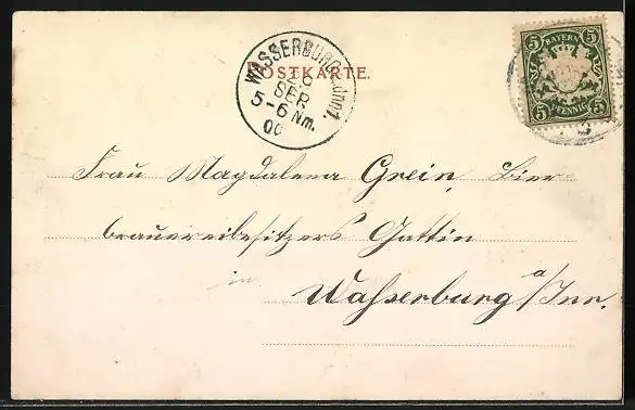 alte Ansichtskarte, gelaufen 1900, guter Zustand