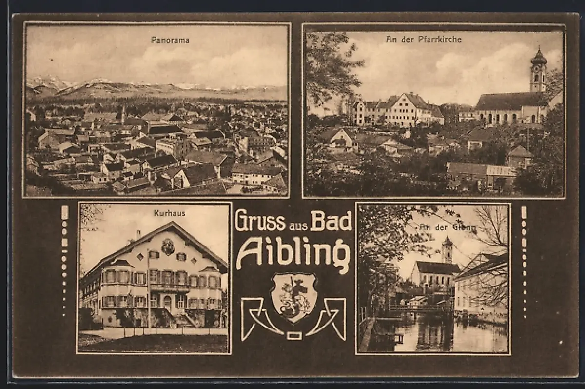 AK Bad Aibling, Panorama, Pfarrkirche, Kurhaus, Wappen