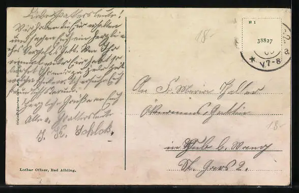 alte Ansichtskarte, gelaufen, Briefmarke entfernt, Stempelspur, guter Zustand