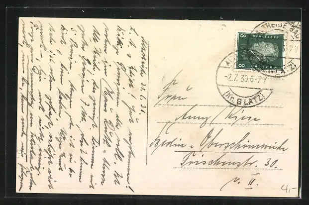 alte Ansichtskarte, gelaufen 1930, guter Zustand