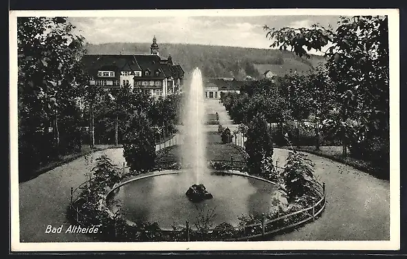 AK Bad Altheide, Parkpartie mit Springbrunnen