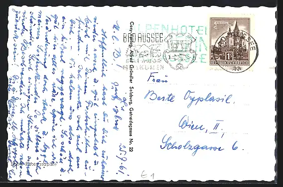 AK Bad-Aussee, Alpengasthof Wasnerin mit Dachstein