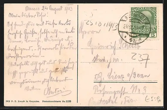 gelaufen 1913, Abriebspur re. unten, guter Zustand