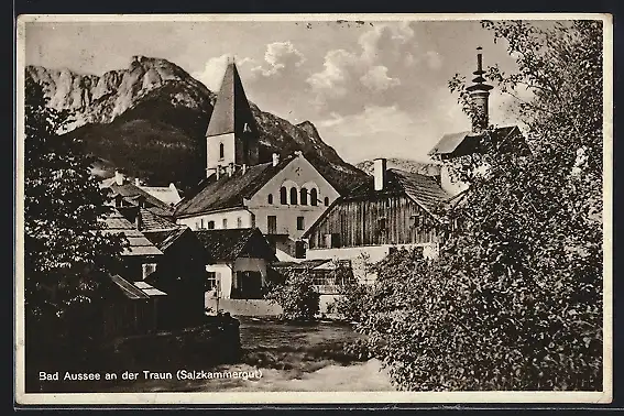 AK Bad Aussee an der Traun, Ortspartie mit Kirche