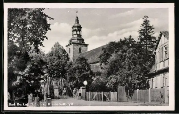 AK Bad Berka /Th., Ortspartie mit Brücke und Kirche