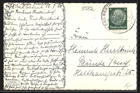 Personenbezogene Daten auf der Rückseite der Karte wurden durch blauen Textmarker unkenntlich gemacht. Die blauen Stellen sind auf die Vorderseite durchgeweicht und wirken sich negativ auf das Postkartenfoto aus