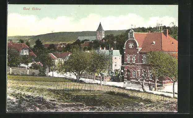 AK Bad Bibra, Strassenpartie mit Gebäudeansicht