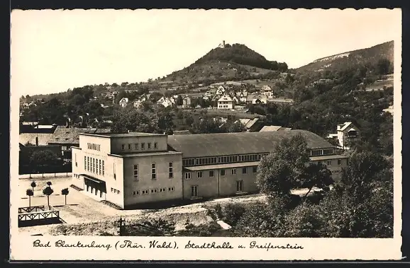 AK Bad Blankenburg /Thür. Wald, Stadthalle und Greifenstein