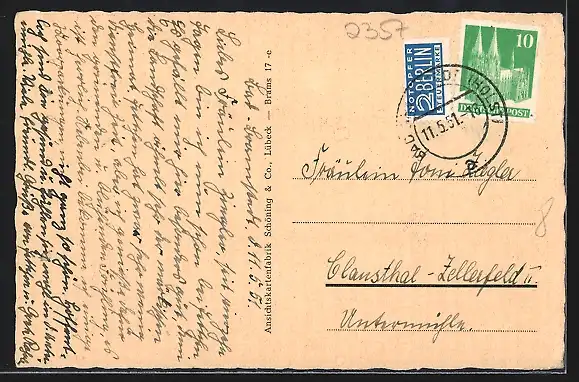 alte Ansichtskarte, gelaufen 1951, guter Zustand