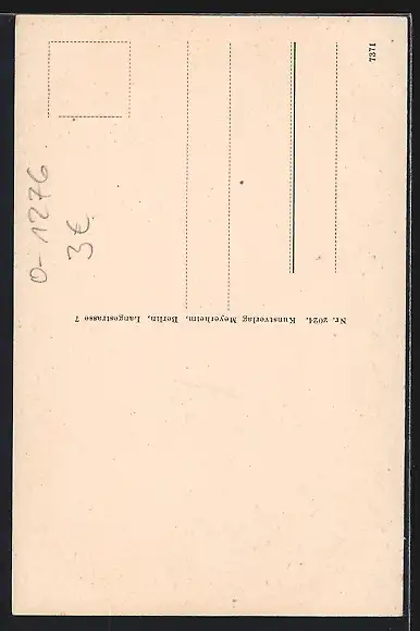 Personenbezogene Daten auf der Rückseite der Karte wurden durch blauen Textmarker unkenntlich gemacht. Die blauen Stellen sind auf die Vorderseite durchgeweicht und wirken sich negativ auf das Postkartenfoto aus