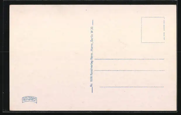 Personenbezogene Daten auf der Rückseite der Karte wurden durch blauen Textmarker unkenntlich gemacht. Die blauen Stellen sind auf die Vorderseite durchgeweicht und wirken sich negativ auf das Postkartenfoto aus