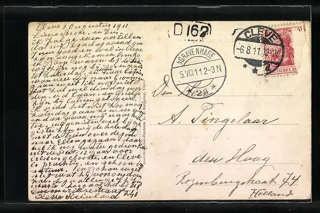 gelaufen 1911, Briefmarke entfernt, guter Zustand