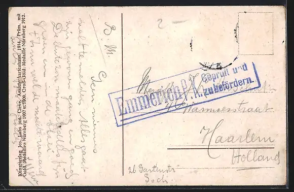 alte Ansichtskarte, gelaufen, Briefmarke entfernt, guter Zustand