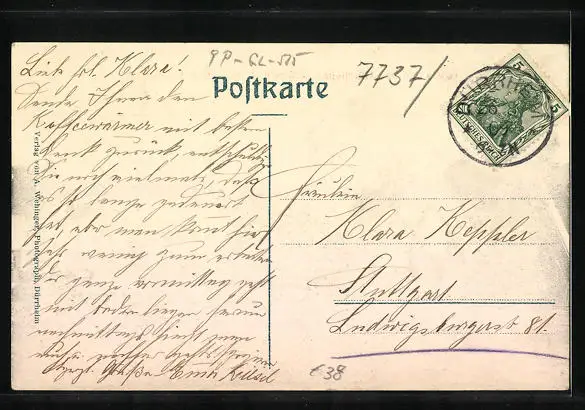 alte Ansichtskarte, gelaufen 1909, Stempelspur, guter Zustand