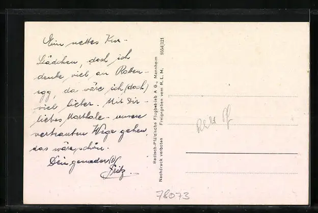 ungelaufen, Rückseite beschrieben, guter Zustand