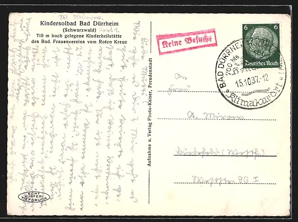 gelaufen 1937, Eckknick li. oben, Bugspur oben mittig, guter Zustand