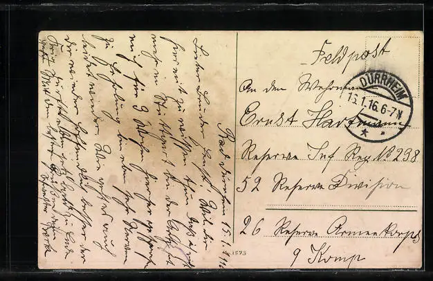 gelaufen 1916 als Feldpost, Stempelspur, guter Zustand