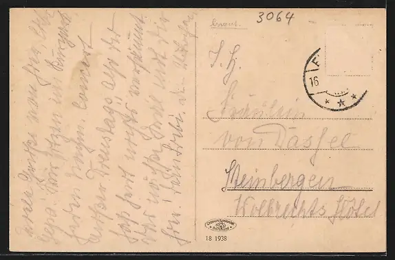 alte Ansichtskarte, gelaufen, Briefmarke entfernt, rückseitig Oberflächenschaden, guter Zustand