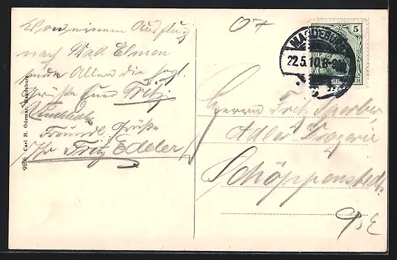 alte Ansichtskarte, gelaufen 1910, Stempelspur, guter Zustand
