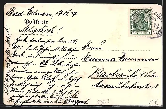 alte Ansichtskarte, gelaufen 1907, kleiner Eckschaden li. oben, guter Zustand