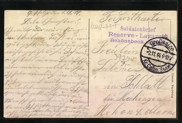 alte Ansichtskarte, gelaufen 1914 als Feldpost, guter Zustand