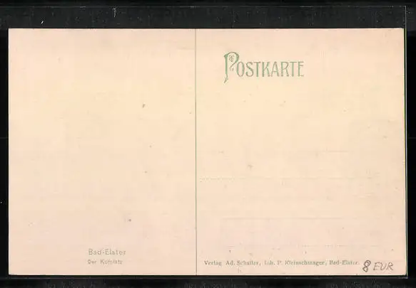 Personenbezogene Daten auf der Rückseite der Karte wurden durch blauen Textmarker unkenntlich gemacht. Die blauen Stellen sind auf die Vorderseite durchgeweicht und wirken sich negativ auf das Postkartenfoto aus