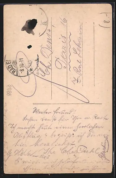 alte Ansichtskarte, gelaufen 1911, Briefmarke entfernt, guter Zustand