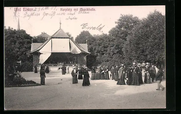 AK Bad Elster, Kurplatz mit Musikhalle