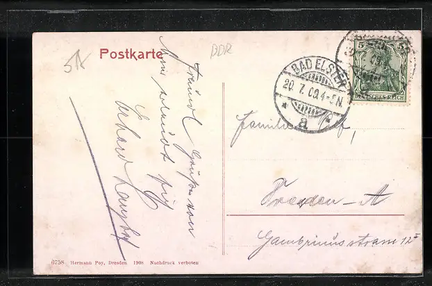 alte Ansichtskarte, gelaufen 1909, guter Zustand