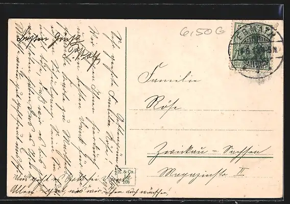 alte Ansichtskarte, gelaufen 1913, Bugspur oben li., guter Zustand